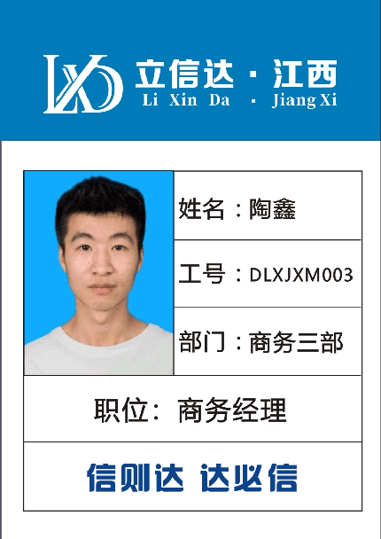 姓名:陶鑫 工號:DLXJXM003 部門:江西三部 職位:商務(wù)經(jīng)理