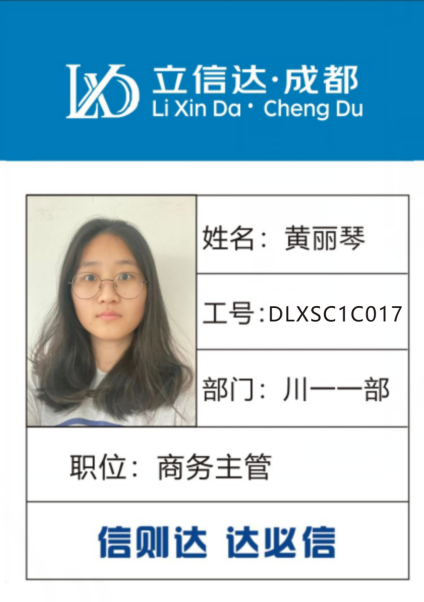 姓名:黃麗琴 工號(hào):DLXSC1C017 部門(mén):川一一部 職位:商務(wù)主管