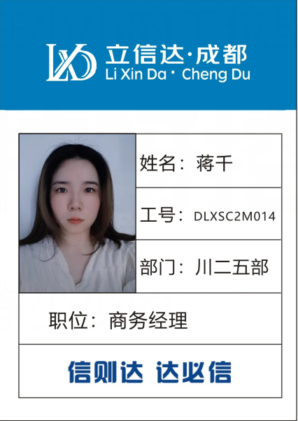 姓名:蔣千 工號(hào):DLXSC2M014 部門:川二五部 職位:商務(wù)經(jīng)理