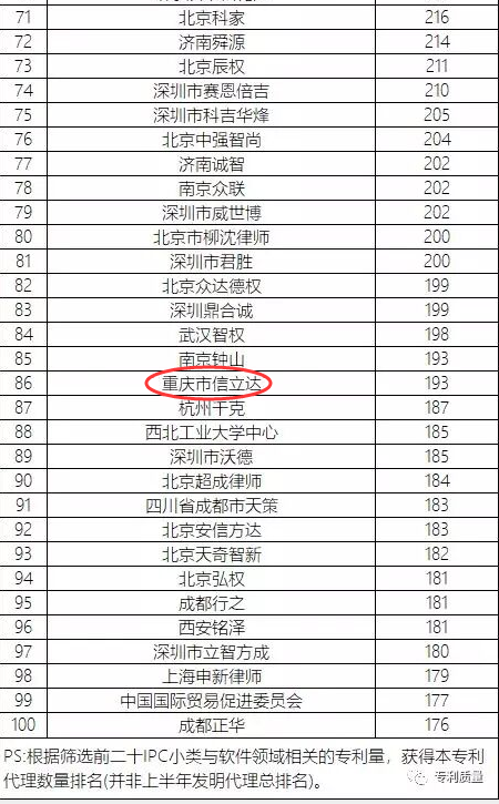 2019.10.12一條顯眼的新聞出現(xiàn)在立信達(dá)家人的眼前,那就是重慶立信達(dá)經(jīng)相關(guān)專業(yè)機(jī)構(gòu)統(tǒng)計(jì)成功進(jìn)入全國(guó)前二十IPC小類與軟件領(lǐng)域相關(guān)的專利量前100(第86名),而且是全重慶唯一一家進(jìn)入全國(guó)排名前100的,這充分證明了客戶對(duì)我們的認(rèn)可以及我司的專業(yè)和實(shí)力。