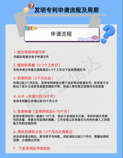 申請發明專利為什么要2-3年甚至更久,而實用新型及外觀設計只需要6-8個月左右?因為實用新型專利和外觀專利只需要初審,而發明專利還要經過實審階段。那么,發明專利申請流程及時間是怎樣的呢?